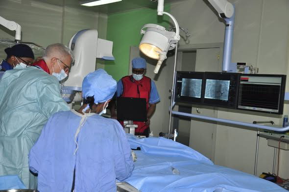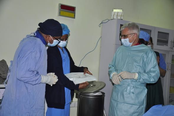 Neben einem Rundgang durch die Pädiatrische Klinik und deren Intensivstation hat er auch wieder eine praktische Übung im Herzkatheterlabor durchgeführt. Gemeinsam mit der ihn begleitenden Kinderkardiologin, Frau Dr. Isabel Roschatt leitete er die im Ayder Hospital tätigen Kardiologen bei der Durchführung der Ballon-Dilatation hochgradiger Stenosen der Pulmonalklappe an (eine der häufigsten angeborenen Herzerkrankungen). Beide Eingriffe waren sehr erfolgreich, sie wurden an einem 14-jährigen Jungen und einem 8 Monate alten Säugling mit einem Gewicht von 7 kg durchgeführt.