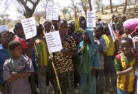 Im Norden Äthiopiens werden die Kinder auf dem Lande in 175 „Baumschulen“ unterrichtet. Sie sitzen auf Steinen, das Heft auf den Knien.